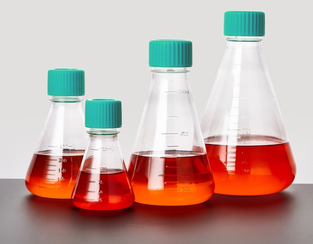 三角培養(yǎng)搖瓶適用于工業(yè)微生物菌種篩選、大規(guī)模發(fā)酵試驗(yàn)、 種子培養(yǎng)等,是細(xì)胞懸浮培養(yǎng)和培養(yǎng)物收集的理想選擇,同時(shí) 也可用于培養(yǎng)基配制、混合及儲(chǔ)存等,相對(duì)于培養(yǎng)瓶、皿、轉(zhuǎn)瓶 等,更加經(jīng)濟(jì)實(shí)惠。 規(guī)格:125mL 250mL 500mL 1000mL 2L 3L 5L 5L(帶把手) 類(lèi)型:平底 帶擋板 蓋類(lèi)型:密封蓋 濾膜蓋 材質(zhì):瓶體聚碳酸酯(PC ) / 環(huán)己二醇(共聚聚酯) (PETG), 瓶蓋高密度聚乙烯(HDPE),濾膜聚四氟乙烯(PTFE),均符 合USP Class VI標(biāo)準(zhǔn)